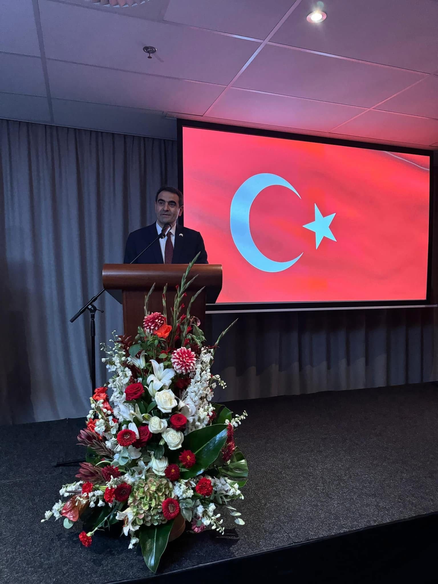 Türkiye Cumhuriyeti’nin 101. kuruluş yıldönümü vesilesiyle Amsterdam’da düzenlenen 29 Ekim Cumhuriyet Bayramı resmi kabul resepsiyonunda, Türkiye Cumhuriyeti Lahey Büyükelçimiz Sayın Selçuk Ünal; Amsterdam Başkonsolosumuz Sayın Burak Ersoy, Deventer Başkonsolosumuz Sayın Hakan Cengiz ve Rotterdam Başkonsolosumuz Sayın Sevgi Kısacık, Hollanda Türk toplumu ile bir araya gelerek Cumhuriyetimizin anlamını ve değerini bir kez daha onurlandırmışlardır.